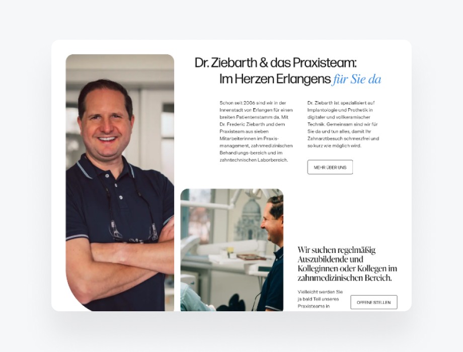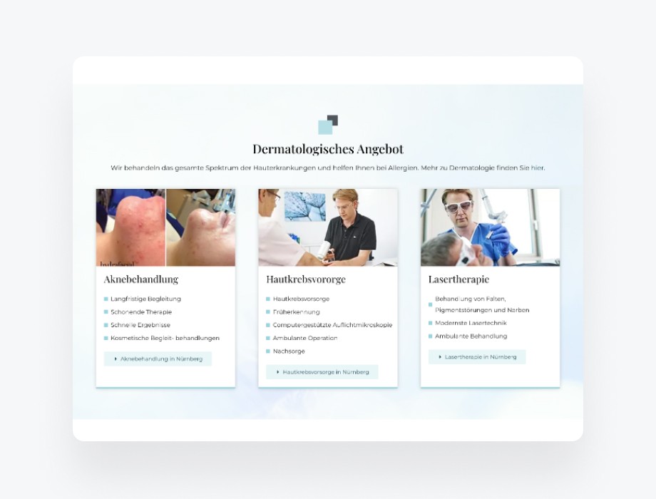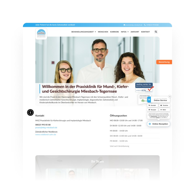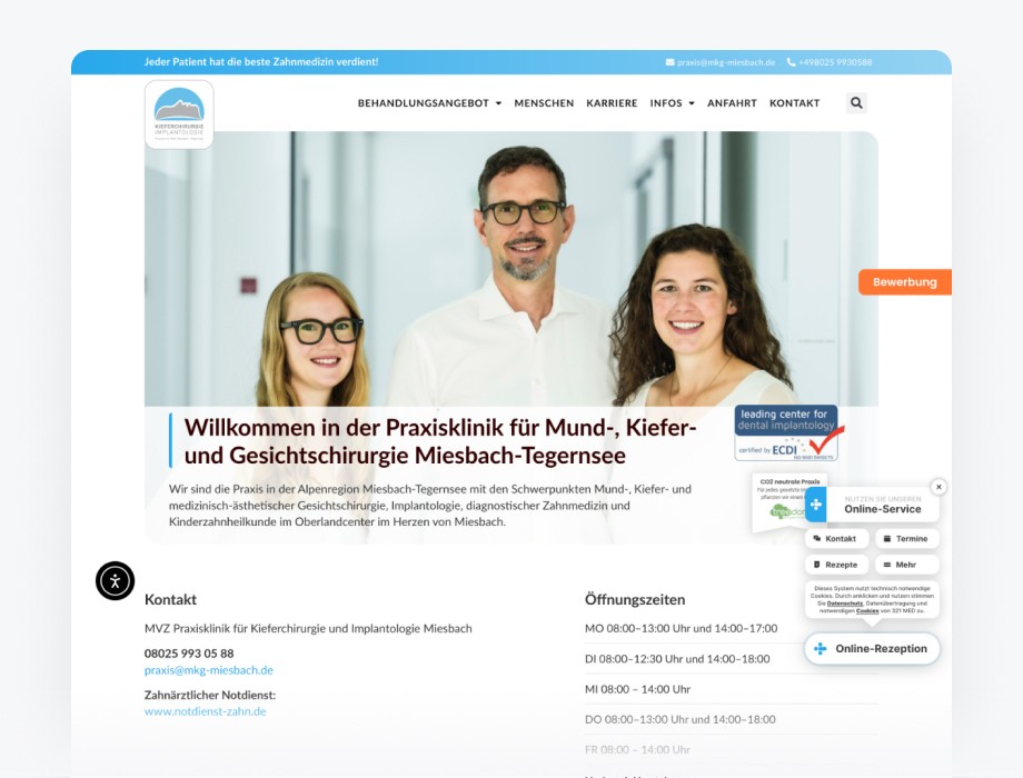 Wir haben alle Leistungen aus einer Hand erbracht: professionelle Website, suchmaschinenoptimierte Texte für Landing Pages und gezieltes Praxismarketing. Alles strategisch aufeinander abgestimmt.
