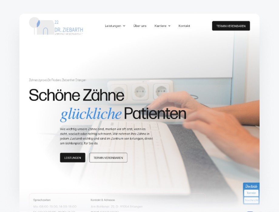 Von Website-Relaunch bis Doctolib-Einführung: wir setzen Ihr Vorhaben professionell um und übergeben es schlüsselfertig.
